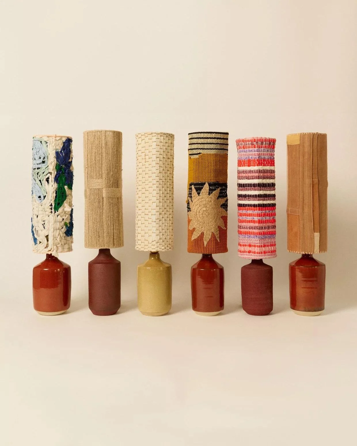 Collaboration avec Sessun pour la Lampe Ezia. Pour fabriquer ces abat-jours, j’ai réalisé des patchworks Pojagi, une technique traditionnelle coréenne qui laisse passer la lumière et rappelle les jeux de transparences du vitrail. Et pour composer chaque patchwork, j’ai sélectionné des tissus naturels (de seconde main) que j’ai teints à la main avec des plantes.
